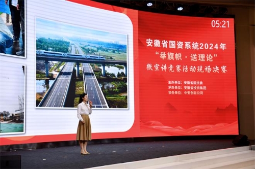 5月31日下午,省国资系统“举旗帜·送理论”微宣讲竞赛活动决赛在中安创谷科技园全球路演中心顺利举办。集团公司党委副书记、董事张日升出席活动。集团公司选手史可欣参加决赛并荣获一等奖。