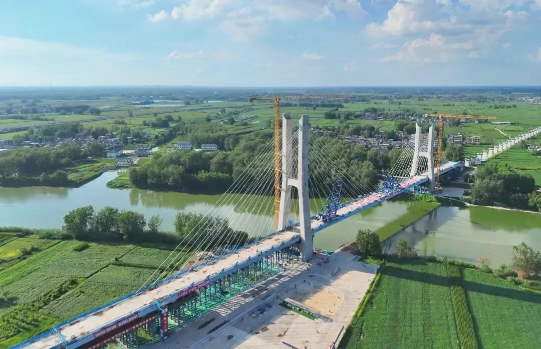 Δ阜淮铁路颍河斜拉桥顺利合龙