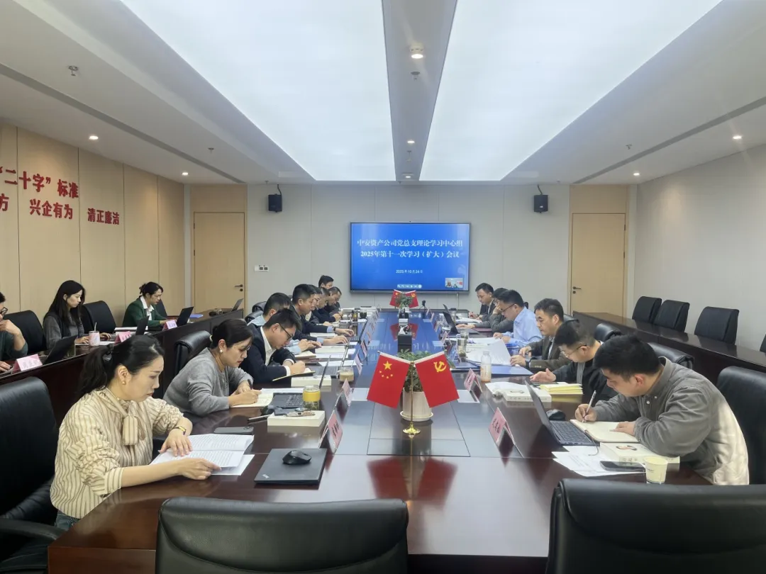 10月24日,中安资产公司召开党总支理论学习中心组学习(扩大)会议,传达学习党的二十届四中全会精神。会议强调,要始终坚守金融工作的政治性、人民性,坚决守住不发生系统性风险的底线。要准确把握新形势新任务,科学谋划和编制好公司“十五五”规划。要持续巩固拓展学习教育成果,纵深推进全面从严治党,营造风清气正、干事创业的良好政治生态。