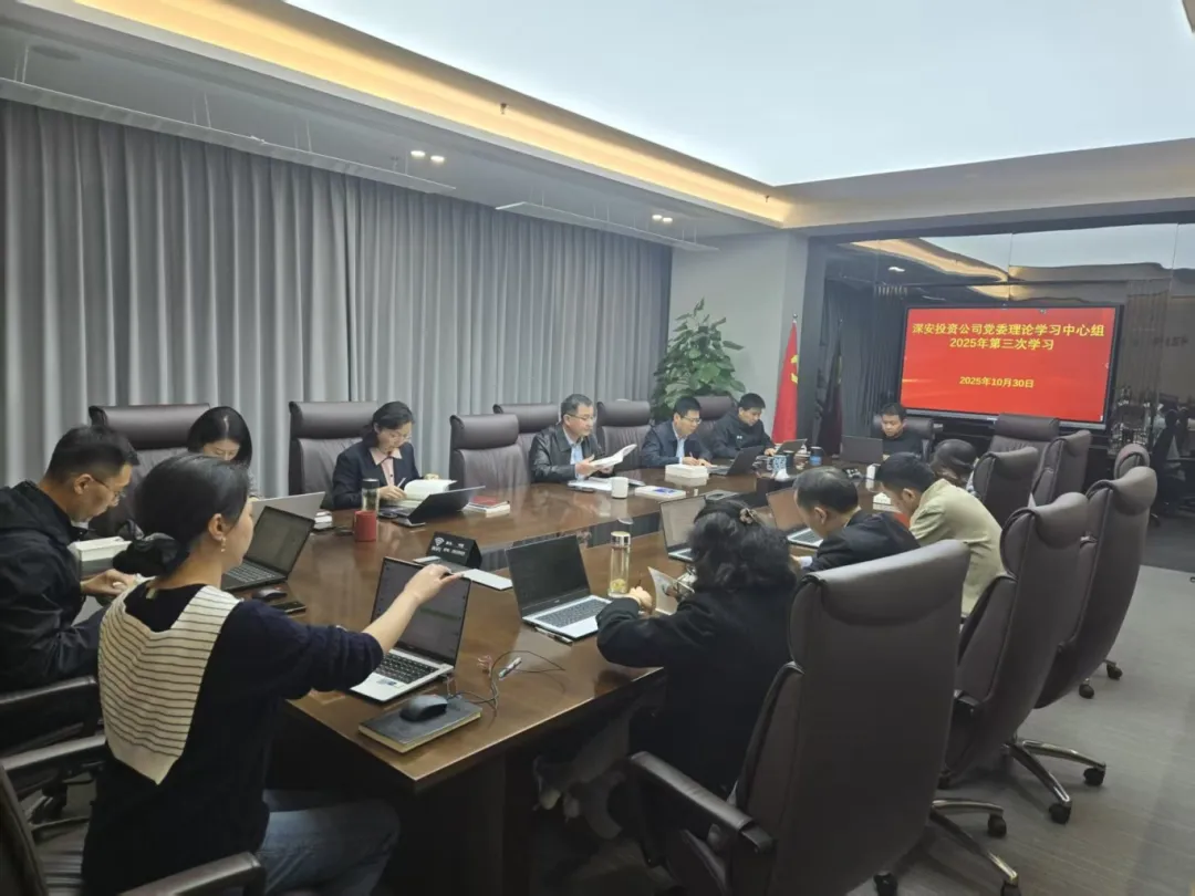 10月30日,深安投资公司召开2025年第三次党委理论学习中心组学习会议,深入学习领会党的二十届四中全会精神。会议强调,要深刻领会全会的精神实质与核心要义,高质量研究编制“十五五”规划。要把学习全会精神的政治热情转化为推动改革发展的强大动力。要认真对照全年经营发展目标任务,倒排时间、压实责任,以“钉钉子”精神抓好落实。