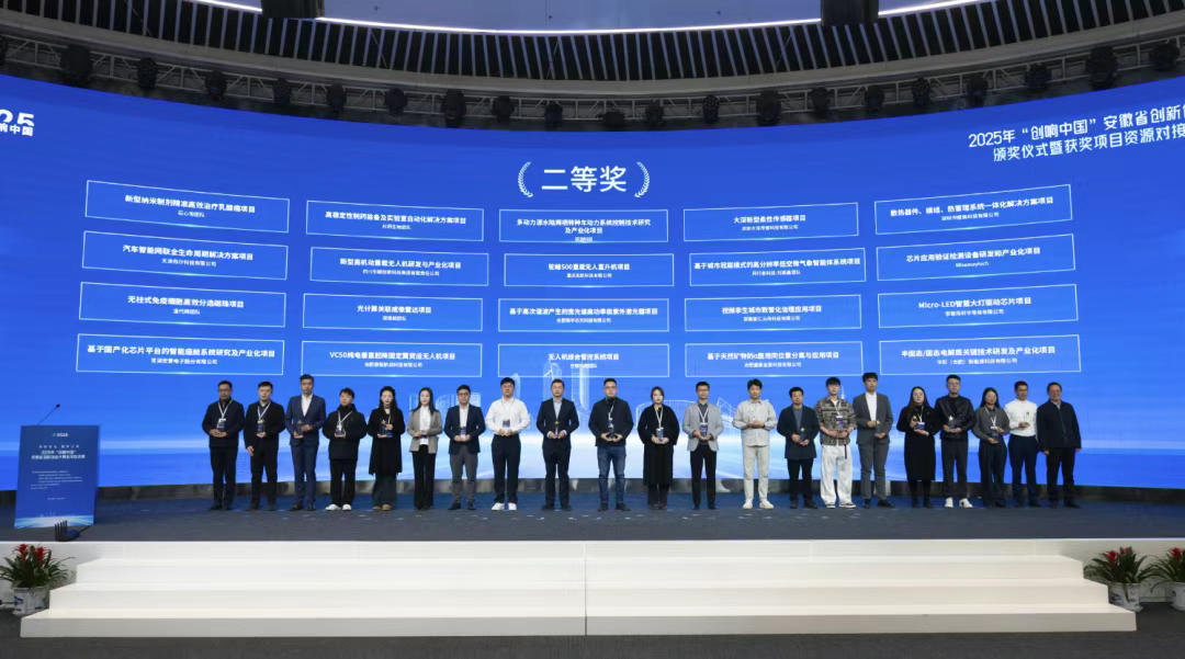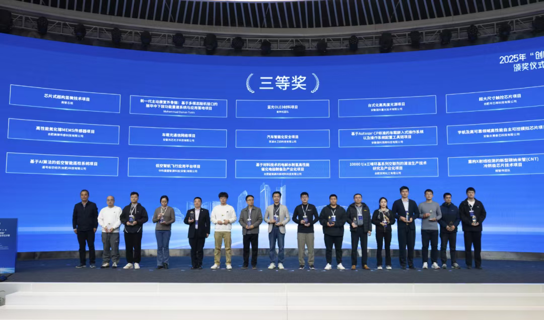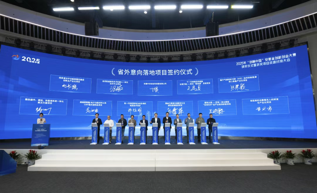 11月28日下午,2025年“创响中国”安徽省创新创业大赛颁奖仪式暨获奖项目资源对接大会在中安创谷科技园全球路演中心举行。安徽省发展和改革委员会、安徽省财政厅、安徽省人力资源和社会保障厅、合肥市人民政府、安徽省科学技术协会、安徽欧美同学会(安徽留学人员联谊会)、“科大硅谷”建设领导小组办公室、安徽省投资集团控股有限公司等八家主办单位,全省各市发展改革、招商部门负责人,获奖团队,合作单位、金融机构、孵化载体、媒体等代表共200余人现场参加活动。本次活动还吸引近90万人次线上观看直播。