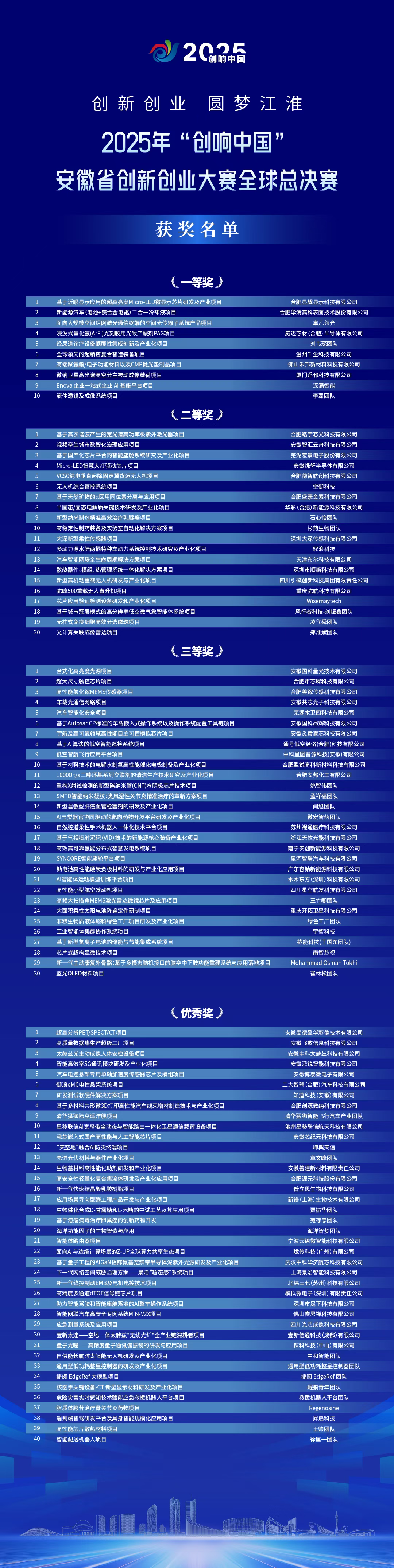 2025年“创响中国”安徽省创新创业大赛获奖名单