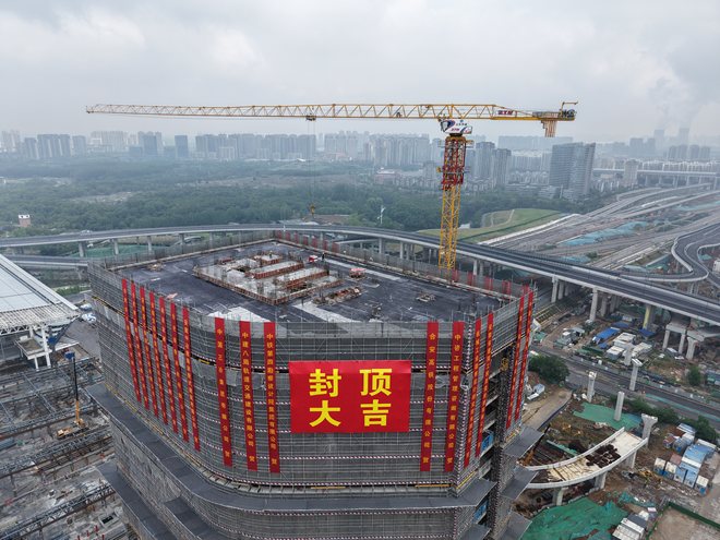 近日,随着合肥西站综合开发及东广场工程北侧主楼第20层屋面顶板混凝土的浇筑完成,标志着北侧主楼主体结构顺利封顶,为综合开发整体工程开展下一步幕墙、装饰装修施工提供了重要保证。蜀山区相关部门、省投资集团旗下合安高铁公司、项目总承包单位、监理单位及施工单位负责人参加封顶仪式。